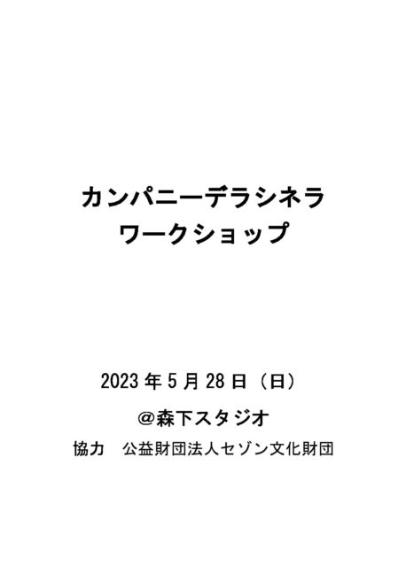 ZoomDetails ワークショップ2023年5月2023年5月28日(日)〜5月28日(日) これまで, ワークショップBy カンパニーデラシネラPosted: 2023.5.15Last updated: 2023.6.2 16:43