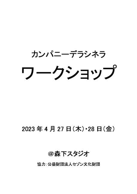 ZoomDetails ワークショップ2023年4月27日(木)〜4月28日(金) これまで, ワークショップBy カンパニーデラシネラPosted: 2023.4.5Last updated: 2023.6.7 17:58